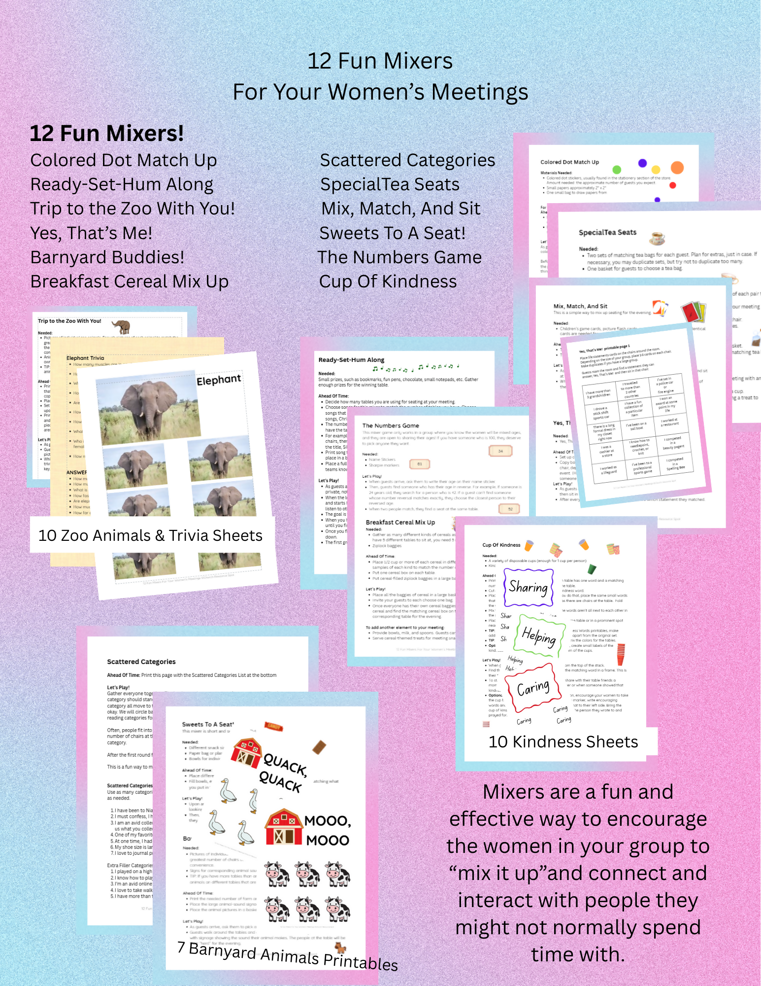 Ultimately, this bundle of 12 fun mixers is an investment in your group, as you help women build connections with someone they might not often sit next to.
