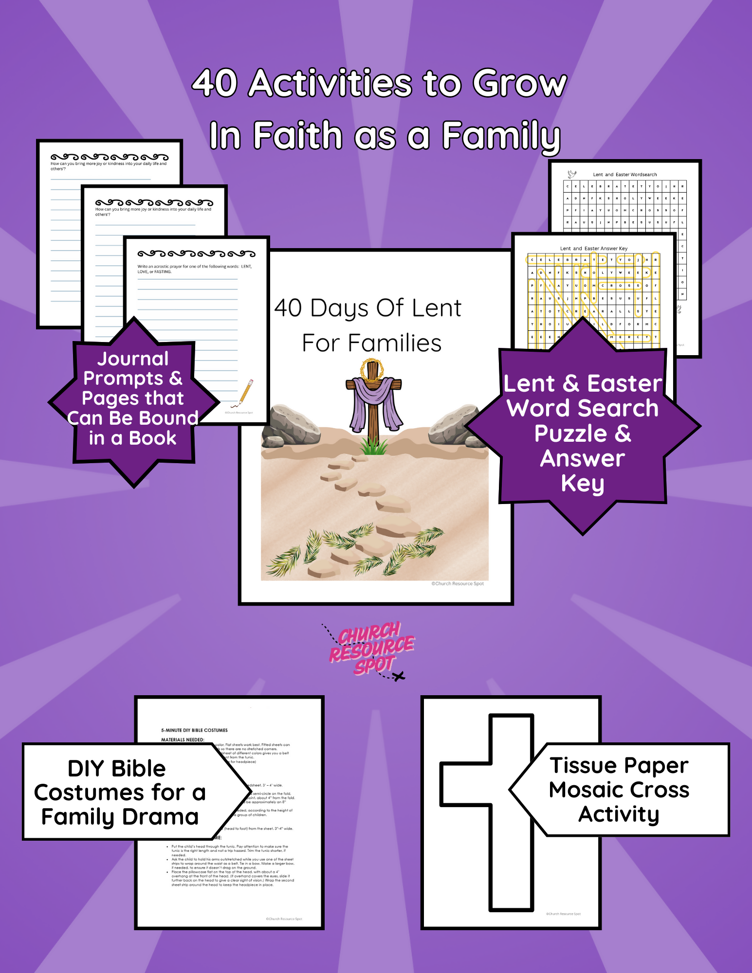- 44 color-coded activity cards for prayer-related activities, games, journal sheets, acts of kindness, crafts, puzzles, or printable activities.