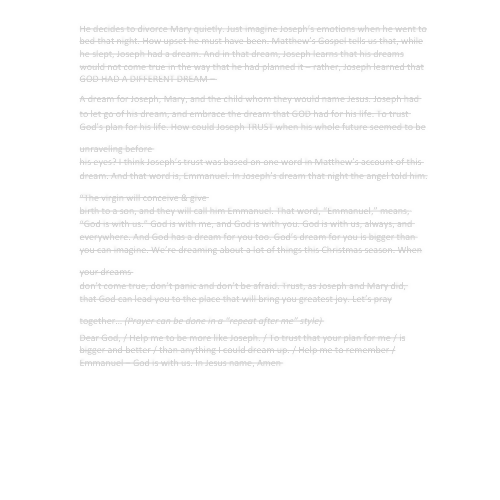 This short, ready-to-use message walks kids through Joseph’s dream from Matthew 1:18–25 and the message of Emmanuel—God with us. Perfect for children’s church, Sunday School, or Advent worship services, this resource includes a full script, discussion questions, prayer, and teacher notes to make presenting easy and impactful.