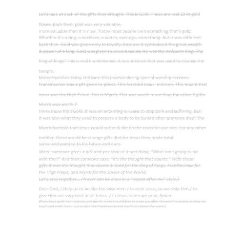 - Interactive Object Lesson: Using real or visual examples of gold, frankincense, and myrrh (Pictures included)