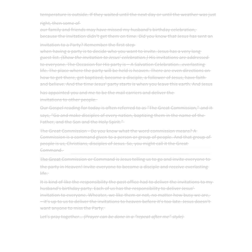 This creative Children’s Sermon or Lesson uses the idea of sending and delivering invitations to teach kids about Jesus’ command to share the Good News with others.