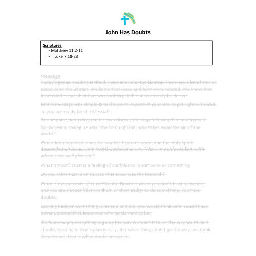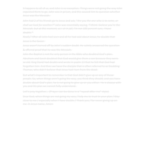 Children & Youth Sermon - "John Has Doubts" (Matthew 11:2-11 or Luke 7:18-23)