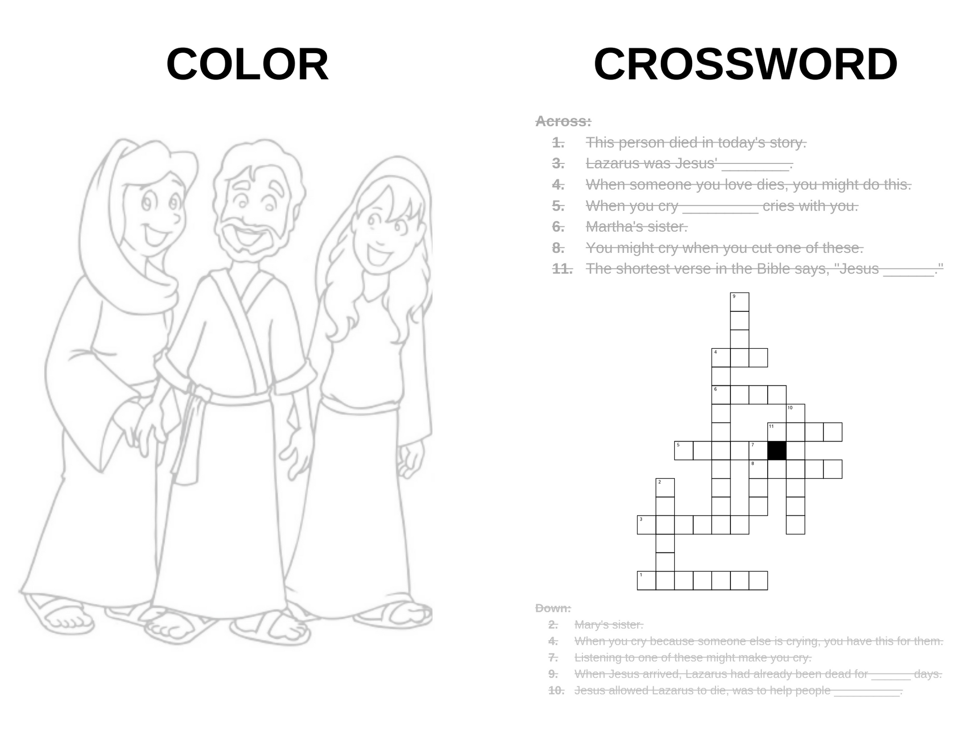 Children & Youth Sermon/Lesson and Activity Booklet - Jesus Cried - (John 11:1-45)