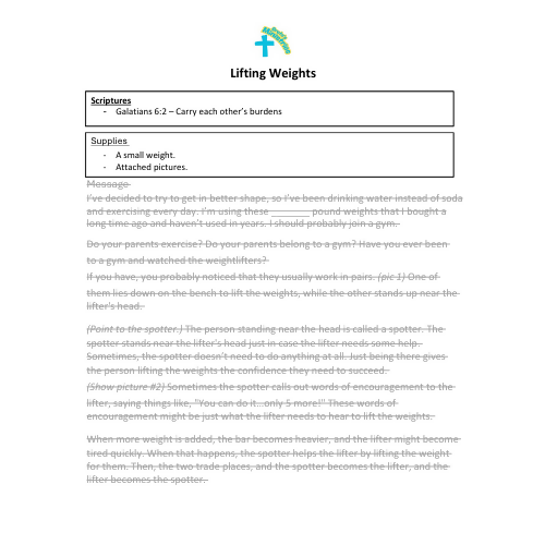 Children & Youth Sermon/Message/Lesson-Lifting Weights-Galatians 6:2 Carry each others burdens.