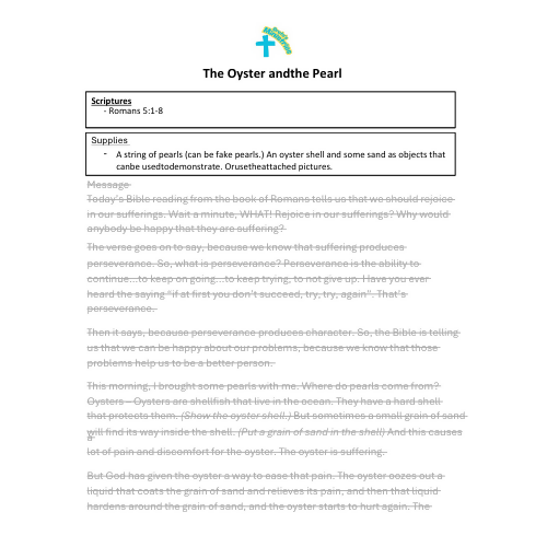 Children & Youth Sermon/Message/Lesson - The Oyster and the Pearl - Romans 5:1-8 Peace & Hope
