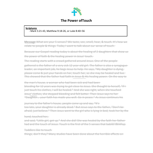 Children & Youth Sermon - The Power of Touch (Mark 5:21-43, Matthew 9:18-26, or Luke 8:40–56)