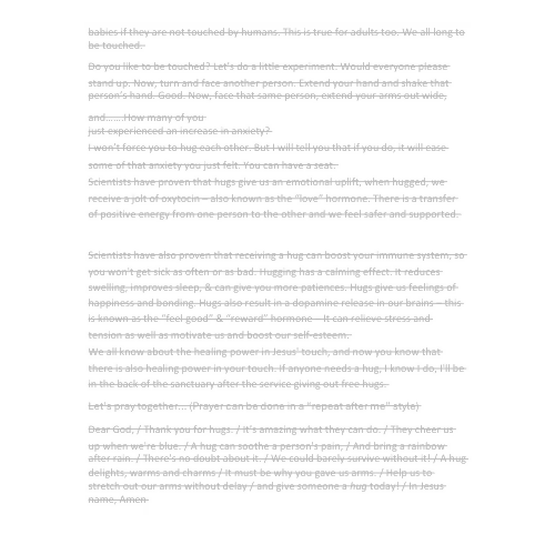 The sermon ends with a joyful invitation to share God’s love through kindness, compassion, and even a simple hug. Just as Jesus used His hands to heal, our caring touch can help brighten someone’s day and remind them they are loved by God.