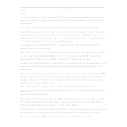 Children's Sermon - Hidden Lesson in the Yeast (Matthew 13:33 or Luke 13:20-21 Romans 8:31-39)