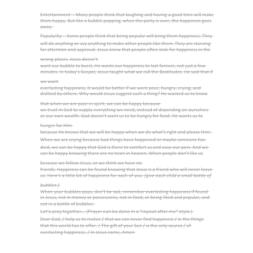 Children's Sermon & Activity booklet-Beatitude Bubbles-(Matthew 5:3-12 or Luke 6:20-23)