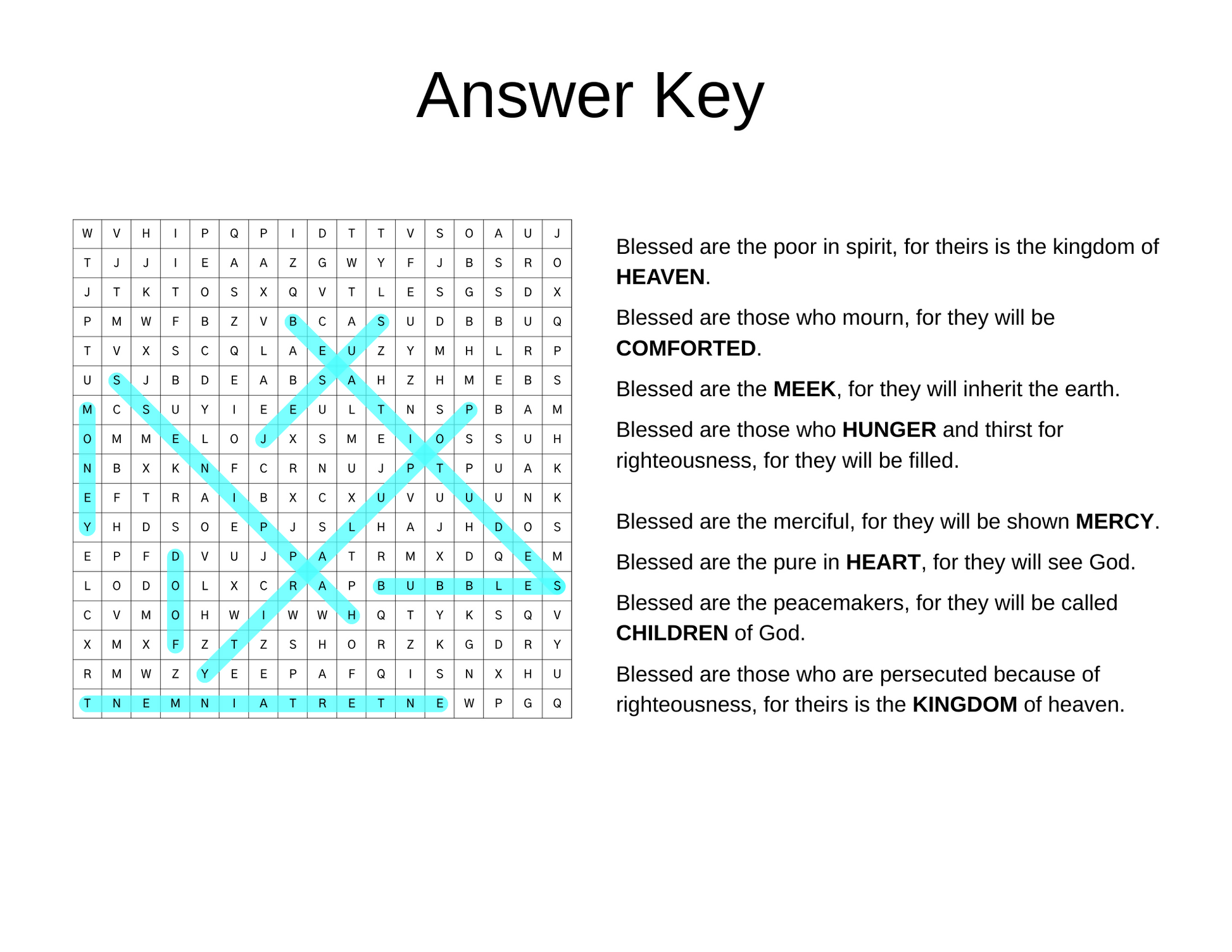 Key Scripture: Matthew 5:3-12 or Luke 6:20–23 — The Beatitudes