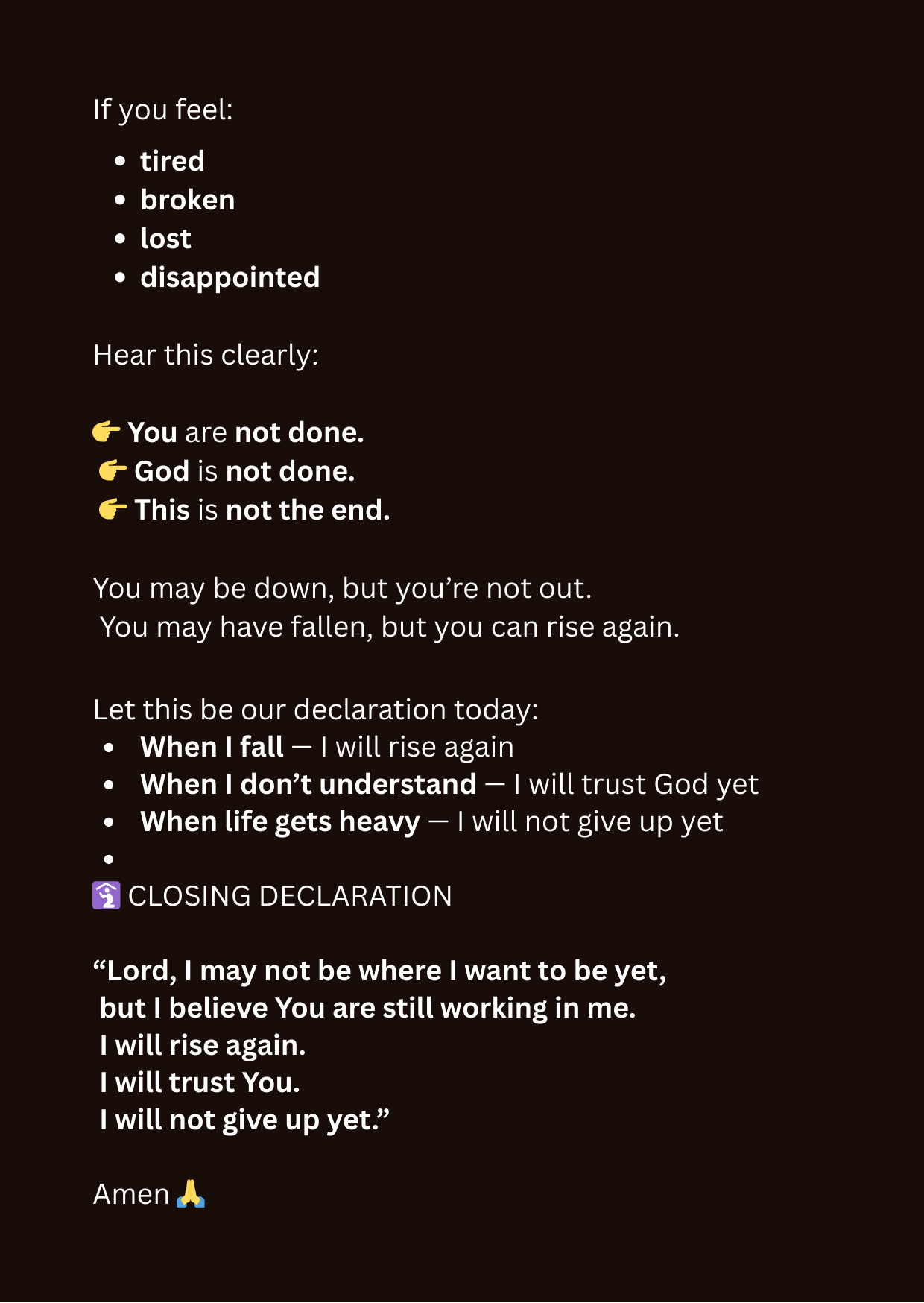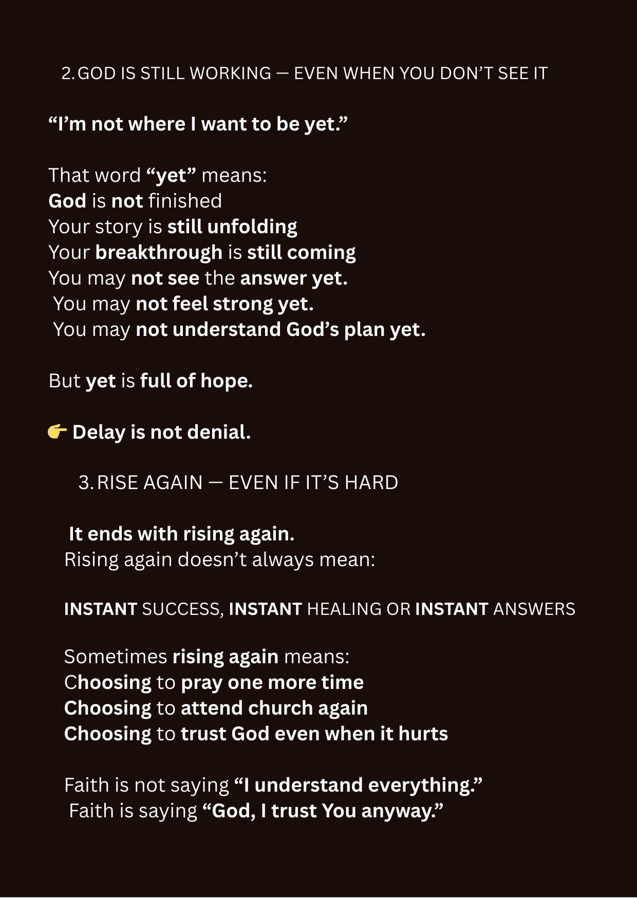 Don’t Give Up Yet! is a youth-centered sermon inspired by Proverbs 24:16 and the worship song “Yet” by Hillside Worship. This message speaks directly to young people who feel tired, delayed, discouraged, or stuck in the middle of their journey.