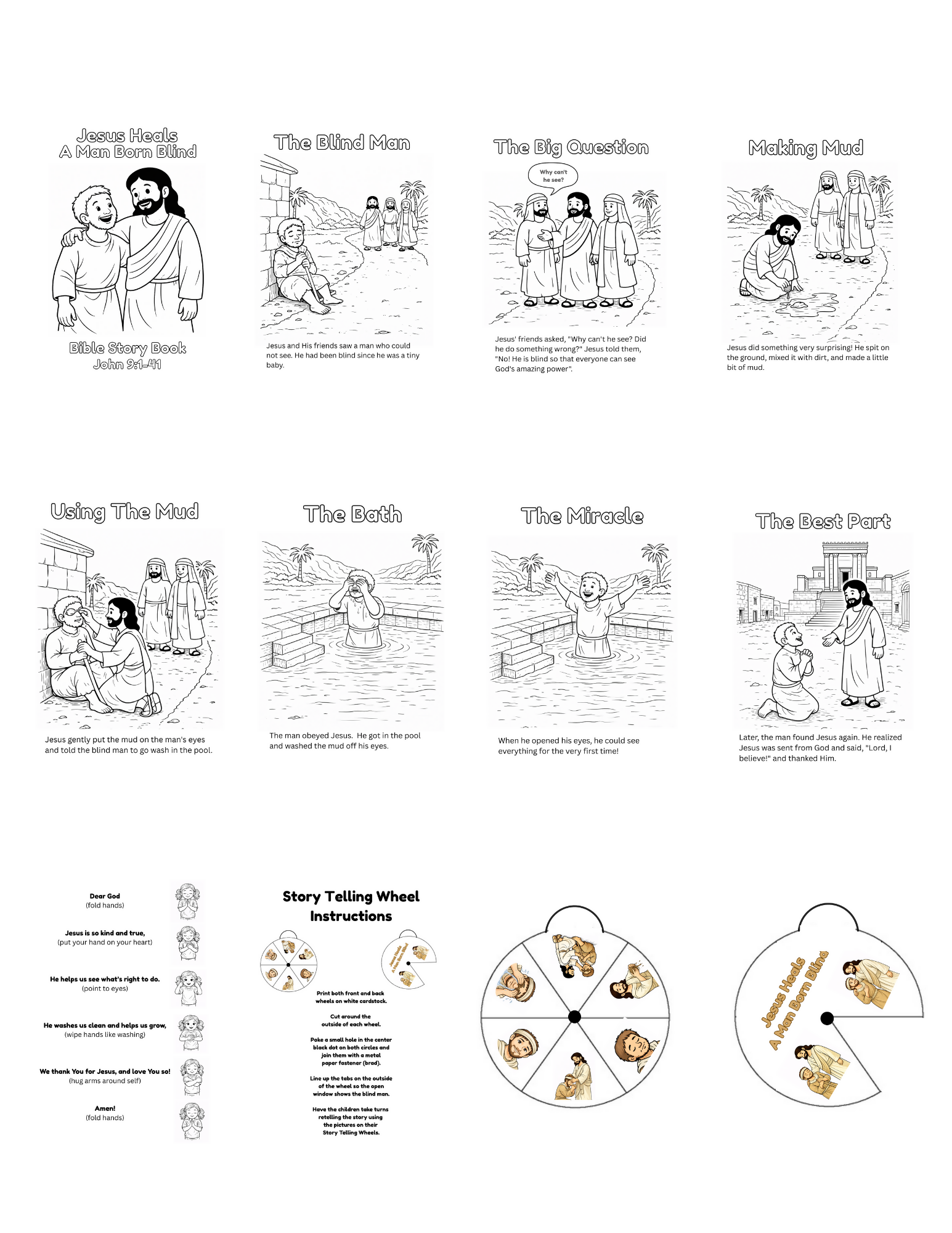 Children will follow the blind man as Jesus makes mud, places it on his eyes, and tells him to wash in the pool. When the man obeys, a miracle happens—he can see for the very first time! The story ends with the man believing in Jesus and worshiping Him.