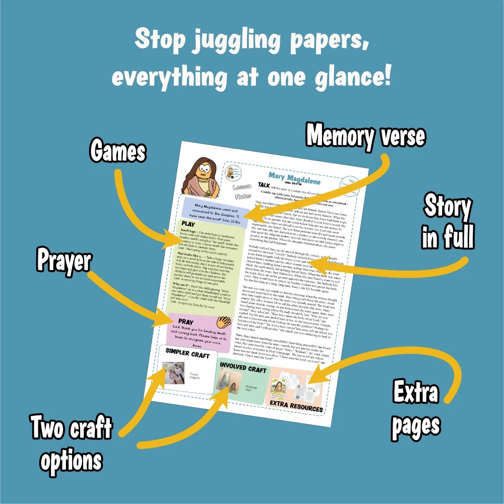 Mary Magdalene (John 20) Kidmin lesson with crafts and colouring