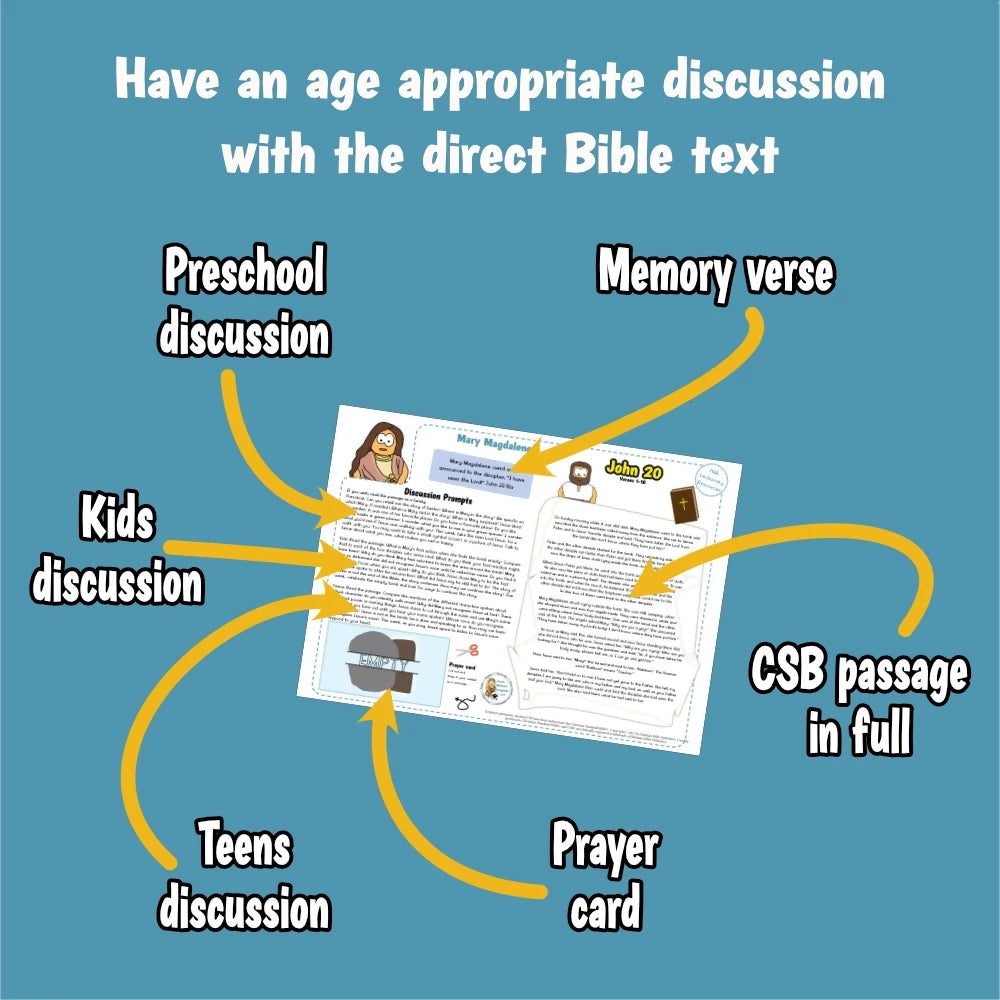 Kids ministry lesson on John chapter 20 : Mary Magdalene meets the risen Jesus on Easter morning. It is perfect for a short kids Sunday school session. It can be used in the home, church or classroom setting.