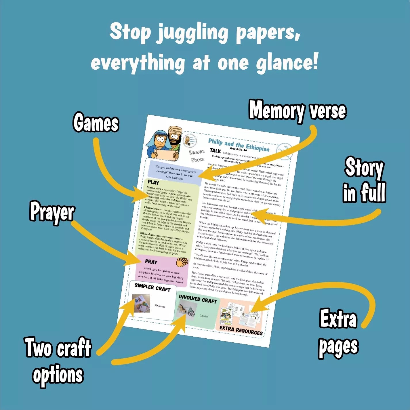 Philip & the Ethiopian (Acts 8) - Kidmin lesson with Crafts and colouring