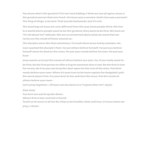 Key Takeaway: In God’s Kingdom, the greatest person is the one who serves others.