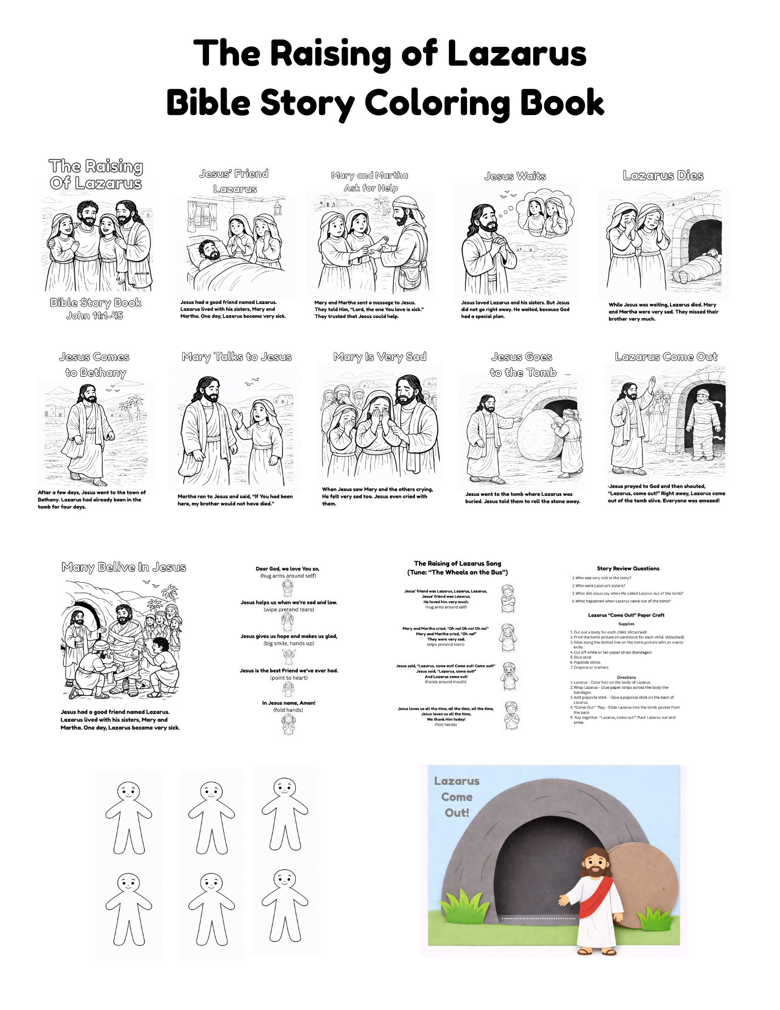 The Raising of Lazarus Bible Story Coloring Book Lesson (Preschool - 1st grade)