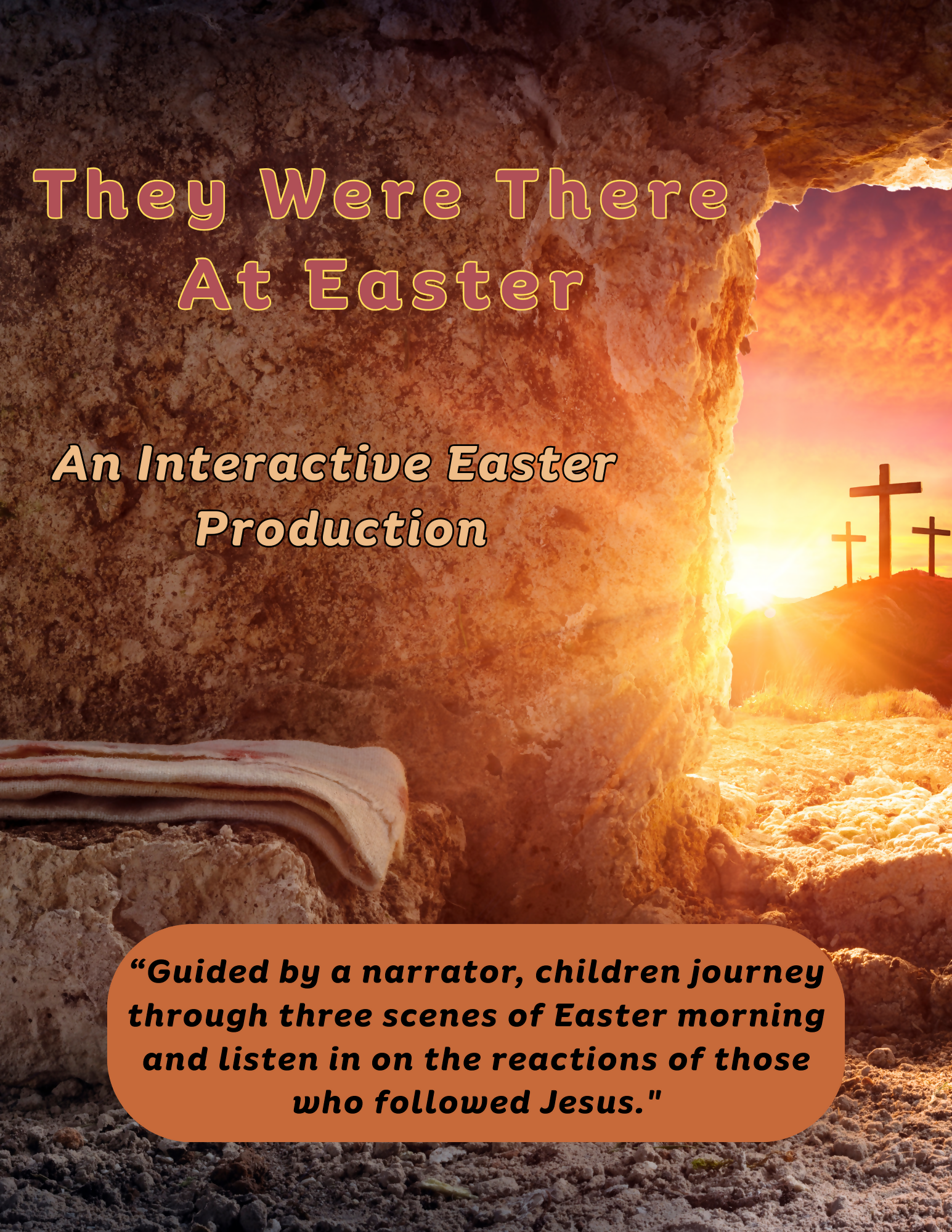 They Were There At Easter is an interactive Easter production designed to help children experience the story of Jesus’ resurrection. Eight adults and older teens play the characters, and the kids walk with the narrator to watch three different scenes of history play out before their eyes.
